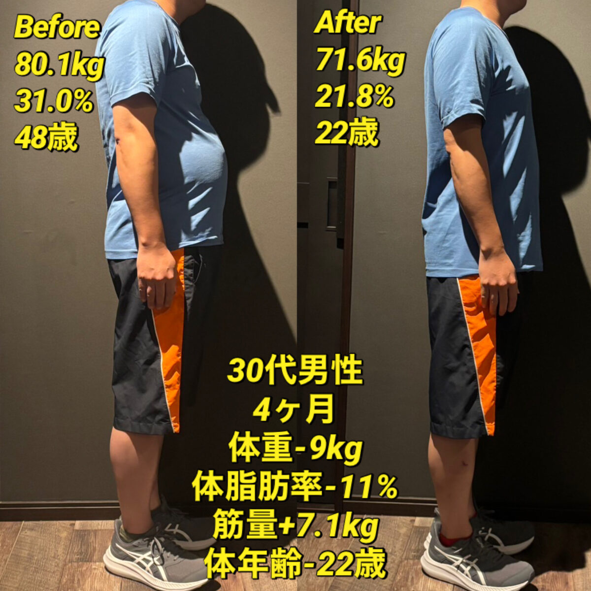 筋肉量 +7.1kg!! 体年齢は -22歳 (48歳からか22歳へ)
